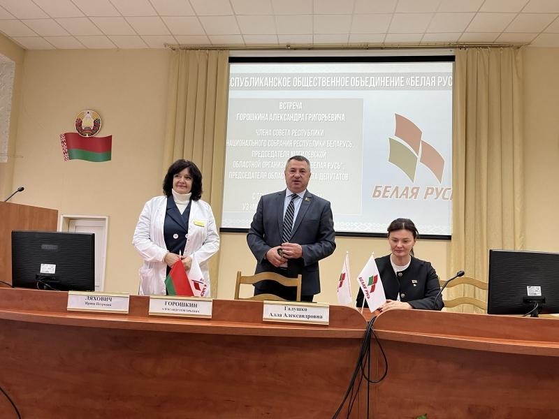 В УЗ «Могилевская больница № 1» состоялась встреча члена Совета Республики Национального собрания Республики Беларусь, председателя Могилевского областного Совета депутатов Александра Горошкина с медицинским коллективом учреждения